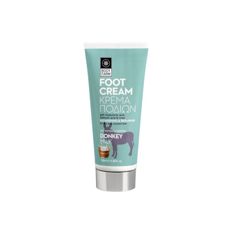 Πλούσια κρέμα ποδιών εμπνευσμένη από τις μοναδικές ενυδατικές και αναπλαστικές ιδιότητες που περιέχει το γάλα γαϊδούρας. Η ειδικά μελετημένη σύνθεση της ενισχυμένη με Υαλουρονικό οξύ, Σαλικυλικό οξύ και Ουρία προστατεύει την επιδερμίδα, φροντίζοντας τα ξηρά και σκασμένα πέλματα και φτέρνες.