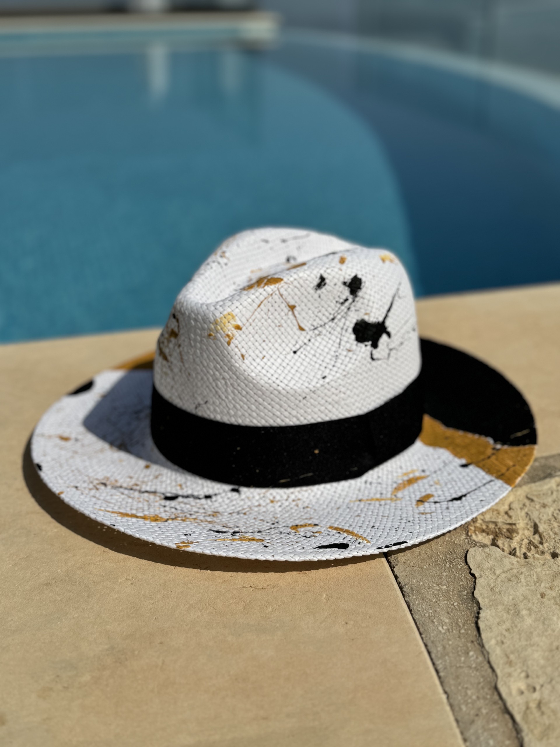 Χειροποίητο ψάθινο καπέλο ζωγραφισμένο στο χέρι .