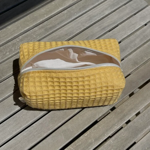 Κίτρινο pique αδιάβροχο makeup bag / small
