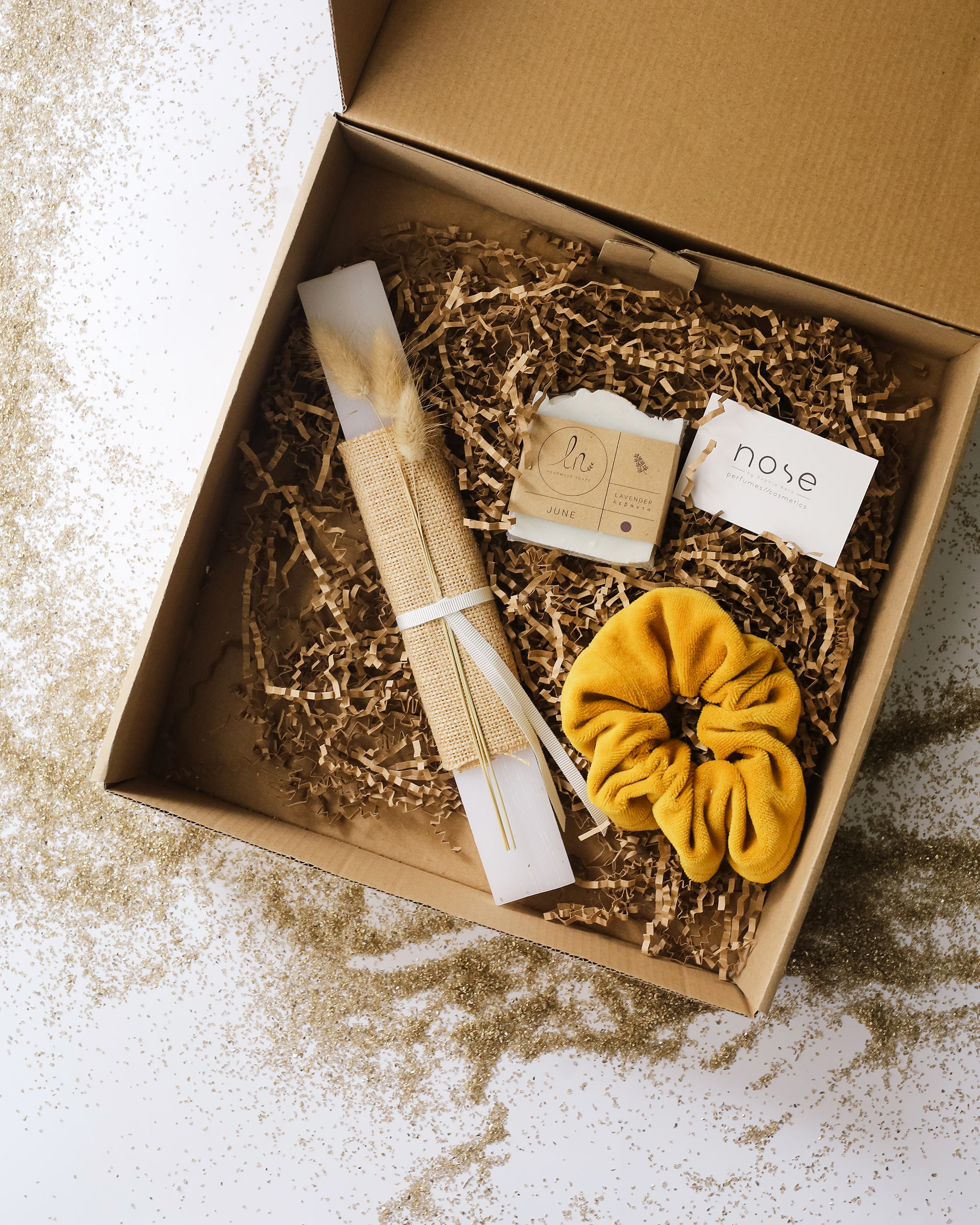 Χειροποίητη λαμπάδα κουτί με αρωματικό κερί και schrunchie λαστιχάκι