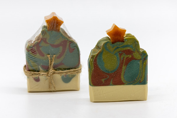 Χειροποίητο σαπούνι με παρθένο ελαιόλαδο και πρόσθετο αμυγδαλέλαιο, καστορέλαιο και λάδι καρύδας για απόλυτη θρέψη, ενυδάτωση και περιποίηση της επιδερμίδας. – Άρωμα μελομακάρονο.
