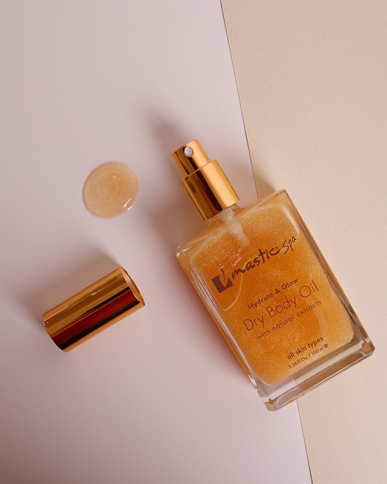 Ξηρό λάδι σώματος για καθημερινή χρήση που χάρη στα φυσικά συστατικά του χαρίζει βαθιά ενυδάτωση, θρέψη και διακριτική λάμψη. το νέο προϊόν Dry Body Oil αφήνει ελαφριά γυαλάδα, αφού εγχέεται με ένα πλούσιο μίγμα από πολύτιμα έλαια, όπως το Mastic Oil και το Almond Oil. Η φόρμουλά του είναι ενισχυμένη με ορυκτά glitters, δημιουργώντας ένα σπινθηροβόλο αποτέλεσμα στο σώμα.
